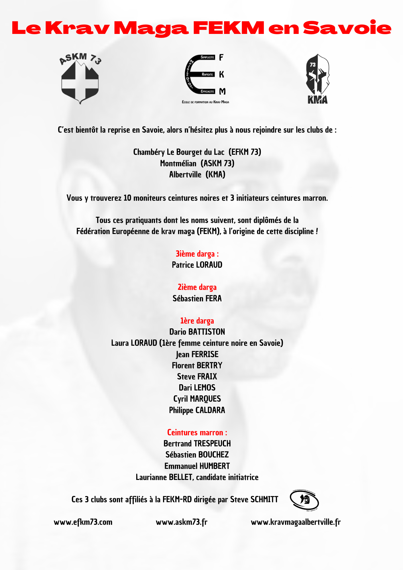 Venez participer à un stage de découverte du krav maga le samedi 09/04/2022 de 09h30 à 12 h00 au foyer Hubert Constantin sis 14 rue centrale à 73000 BARBERAZ.